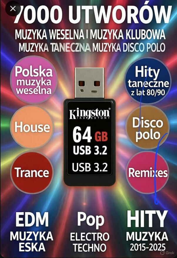 Na sprzedaż zestaw 1900 przebojów Disco Polo w formacie MP3, nagranych na pendrivie USB.Znajdziesz tu największe hity zarówno klasyczne, jak i współczesne — idealne na imprezy, wesela, grille czy do auta!