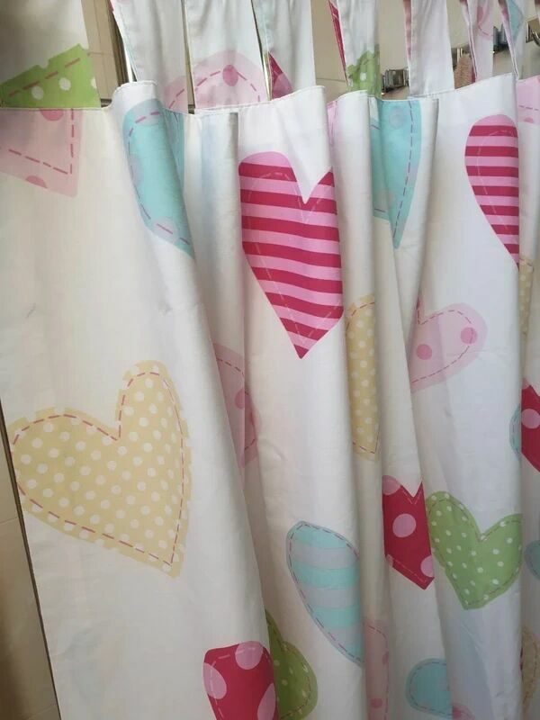 Bawełniana zasłona na szelkach szer 165 x 133 wys kolorowe serduszkapodszytka warstwą bawełny