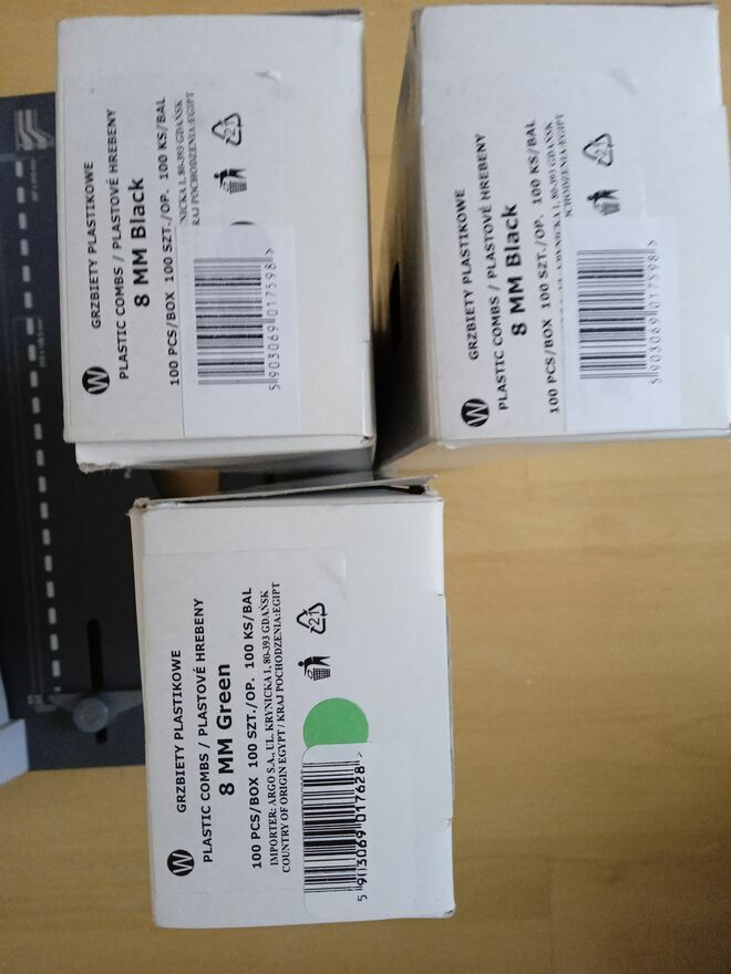 2 pełne opakowania czarnych grzbietów 8 mm (łącznie 200 sztuk).