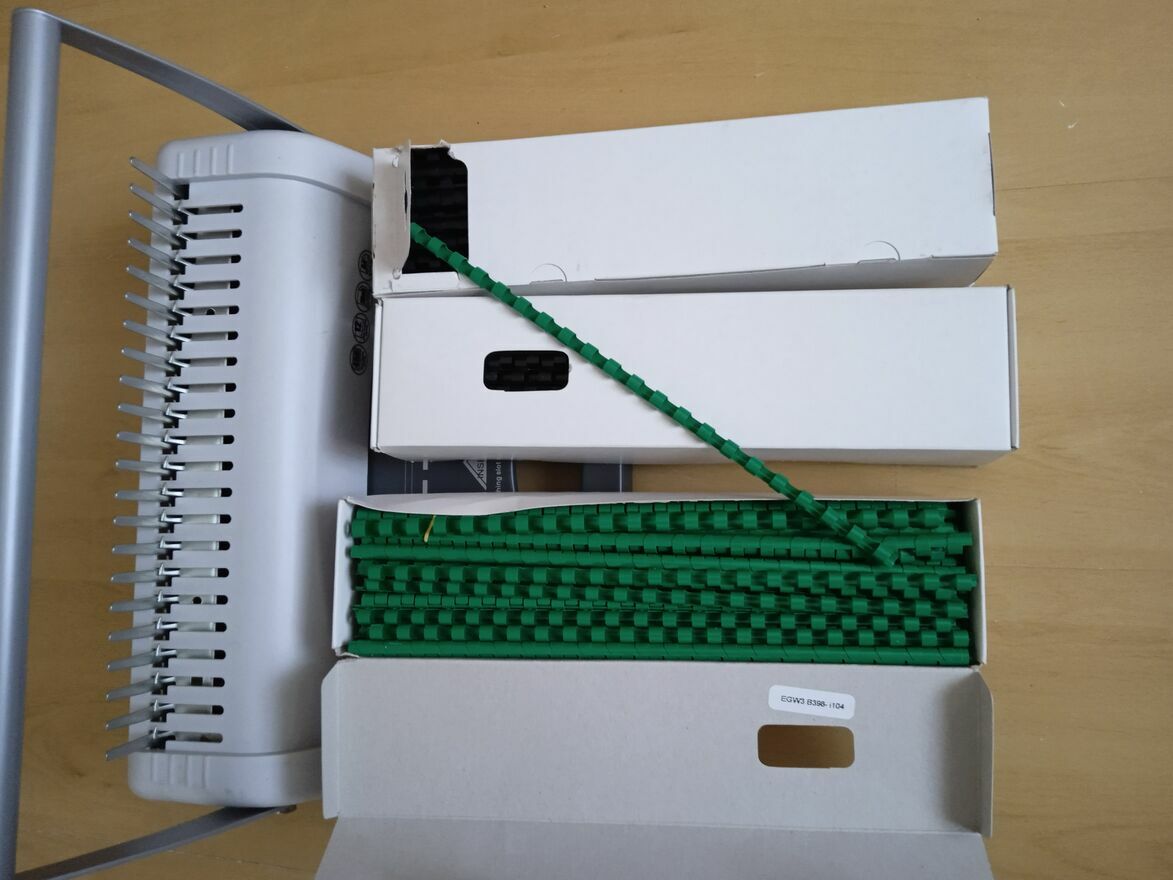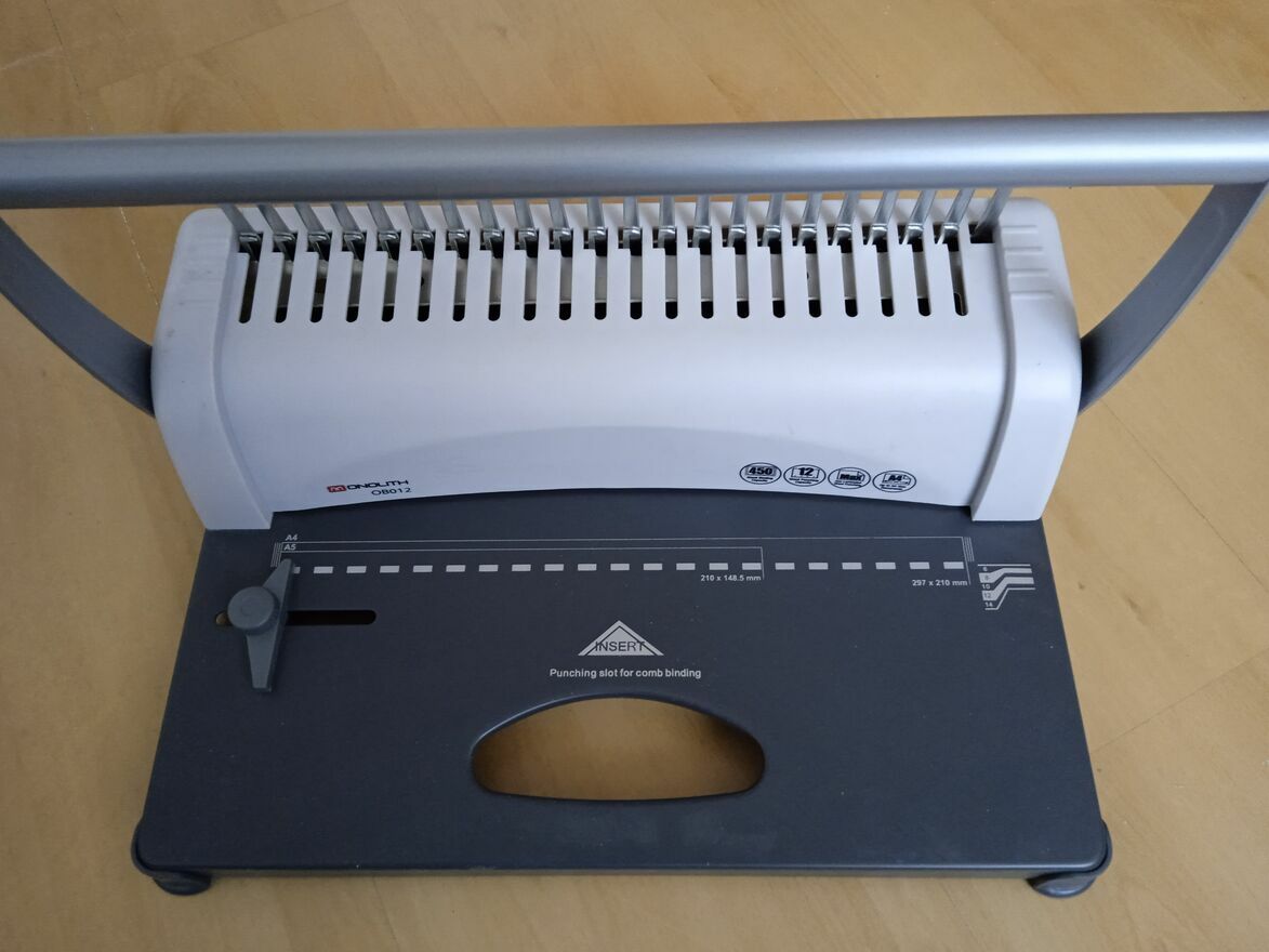 METALOWA (niemiecka) bindownica Monolith OB012 + ZESTAW 3 opak. (około 285 sztuk !) GRZBIETÓW (8 mm) GRATIS !Sprzedam profesjonalną bindownicę Monolith OB012 w stanie idealnym. Urządzenie jest praktycznie nowe – zostało użyte jedynie do oprawy około 15 egzemplarzy próbnej wersji książki. Sprawdziło się doskonale, a teraz może posłużyć Tobie !