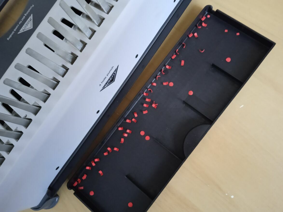 - łatwe opróżnianie pojemnika na ścinki z dziurkowania
