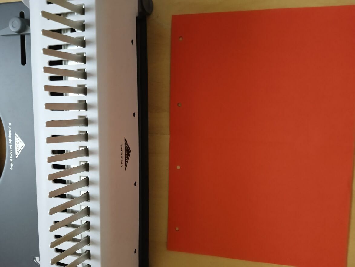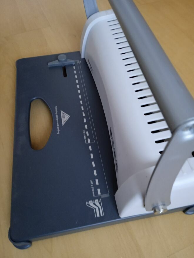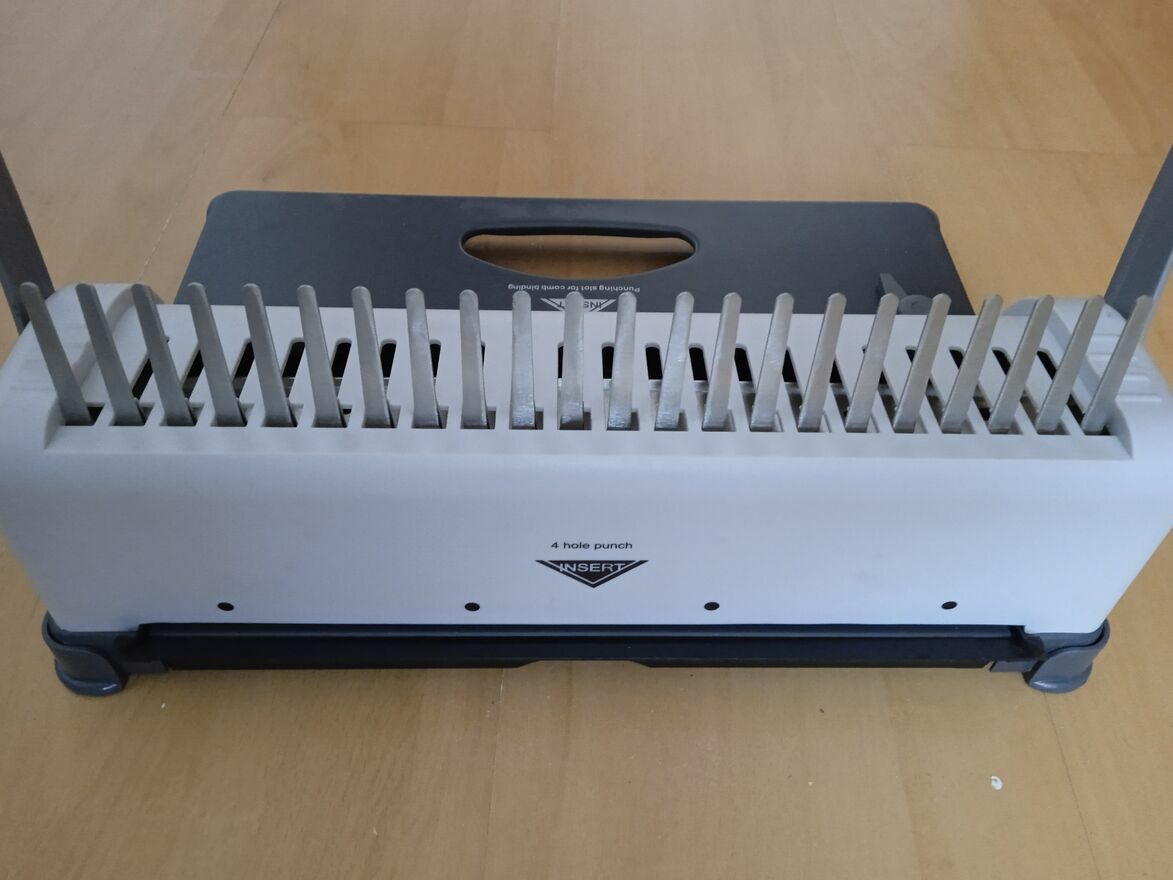 - solidna metalowa rączka do bindowania i dziurkowania