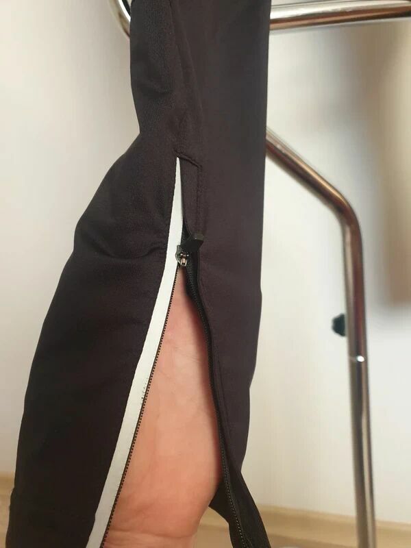 Czarne sportowe leginsy -suwaki na nogawkach z odblaskiemwstawka pod kolanem z innego materiału