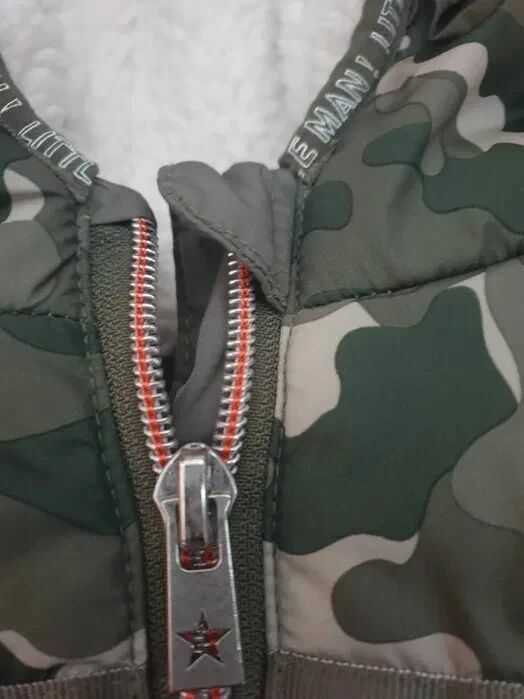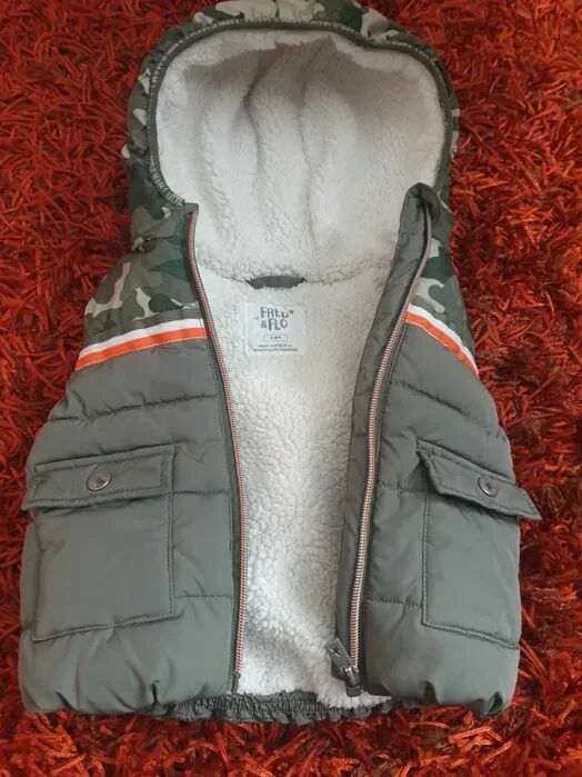 Bezrękawnik z misiem dla malucha w kolorze oliwka moroz kieszonkami Na metce 3 / 6 m-cy ale myślę że do roku