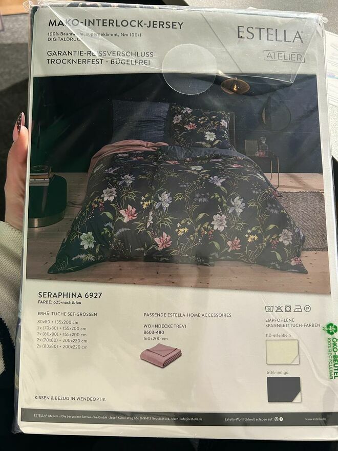 Pościel jersey interlock 155x200 uszyta została z materiału zwanego interlock jersey, który składa się z najwyższej jakości 100% bawełny klasy ELS z przędzy długowłóknistej, super czesanej. Dzięki technice tkania „interlock” pościel jest odporna na zaciągnięcia i nie pruje się po tzw. oczku. Materiał jest wybitnie gładki, bardzo wytrzymały i przyjemny w dotyku, a naturalny skład gwarantuje, że nasza skóra będzie mogła pod nią swobodnie oddychać. Niewątpliwą zaletą pościeli Estella jest odporność na pillingowanie się materiału.