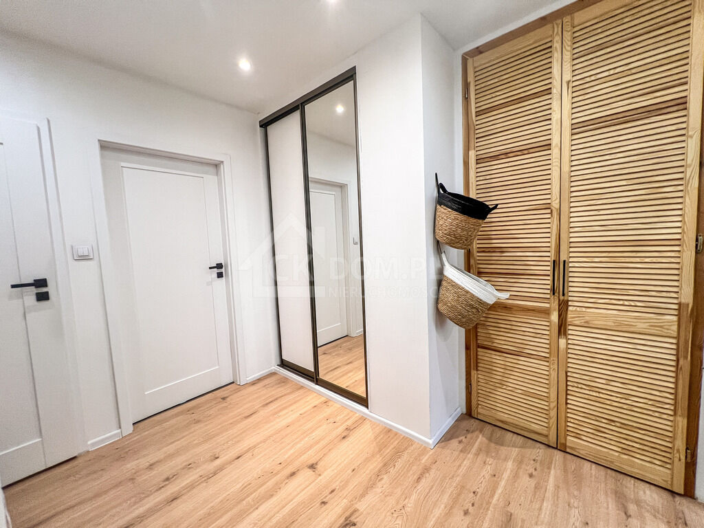 Układ: salon z otwartą kuchnią, sypialnia, korytarz, 2 garderoby,