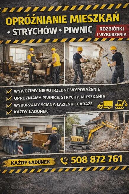 Rozbiórki, wyburzenia, opróżnianie piwnic i mieszkań Zajmujemy się kompleksowymi pracami rozbiórkowymi i ...
