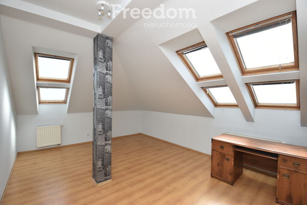 na drugim piętrze na poddaszu. Okna wychodzą na południe i zachód,