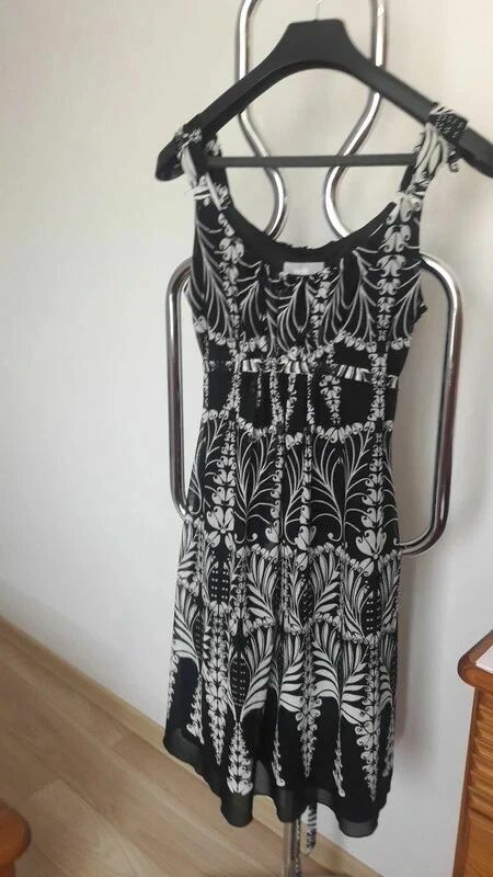 Sukienka czarna z białym cienka na ramiączka Wallis M