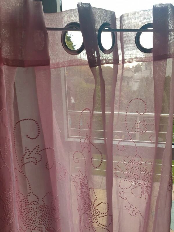 Tkanina firanka na przelotkach blady róż haftszer 131 x 230 wys
